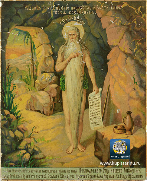 Старинная паломническая икона преподобный Онуфрий Великий - раритет фабрики Бонакера! Такие иконы изготавливались специально для паломников в Святую Землю, и продавались у стен монастыря святого Онуфрия Великого в Восточном Иерусалиме!
