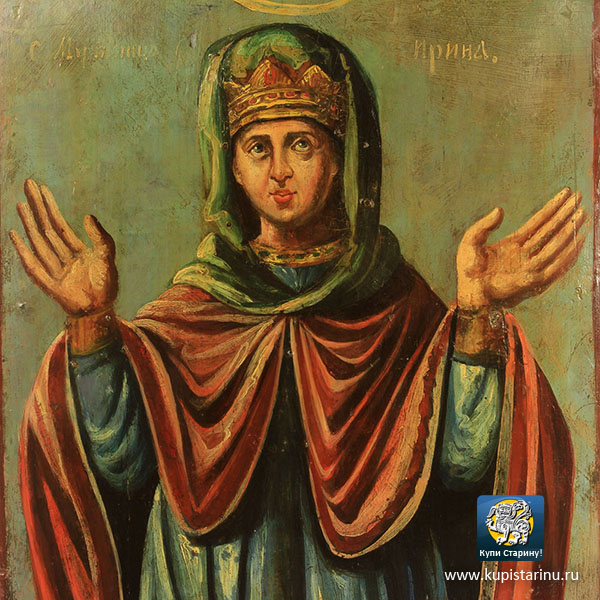 Поэтому особенно представить Вашему вниманию антикварную икону святой Ирины! Попробуйте в принципе разыскать где-то дореволюционный образ, на котором изображается святая Ирина, и Вы поймете, что сделать это крайне сложно!