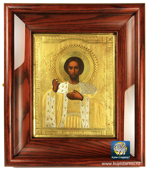 И в завершение сегодняшнего дайджеста мы представим настоящий шедевр, икону и великолепно исполненную, и отлично сохранившуюся, и супервостребованную, к которой бонусом предлагается качественный современный деревянный киот из массива ясеня, оборудованный стеклом с фацетом, сделанный специально на заказ для этого образа - это старинная икона святого благоверного князя Александра Невского!