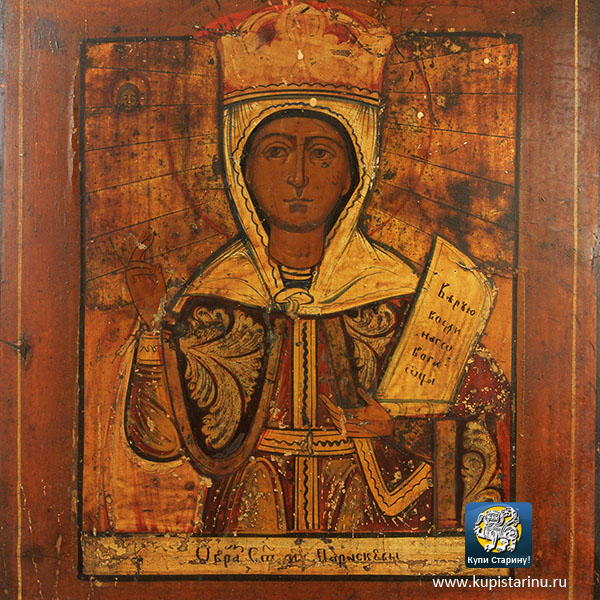 Сегодня мы предлагаем Вашему вниманию старинную икону святой Параскевы Пятницы, написанную во второй половине 19 века в знаменитом иконописном центре Холуй.