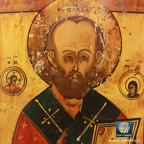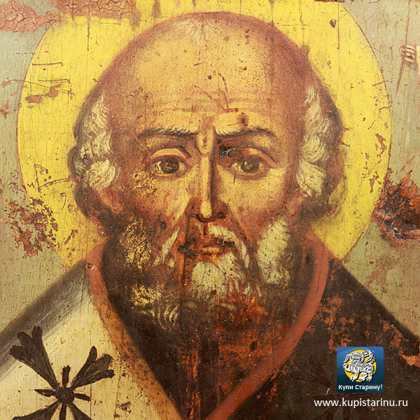 Взгляните на эту икону с образом святителя Мирликийского Николая Чудотворца: насколько красива, удивительна эта старинная икона, выполненная на очень толстой доске!