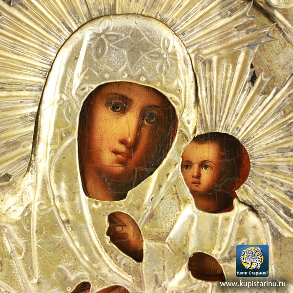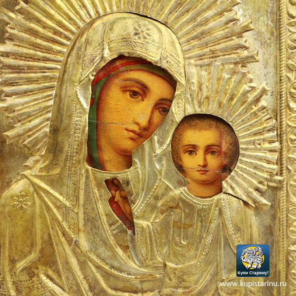 Купить печатную икону 19 века Вы можете у нас, это очень почитаемый образ Казанской Божией Матери. икона сохранилась просто прекрасно, скорее всего, ее сто лет хранили в домашнем киоте!