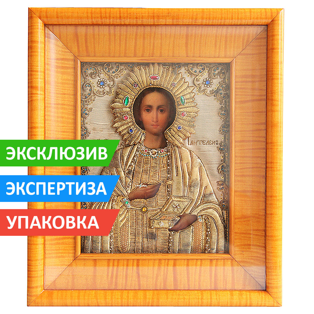 Перед выходными решили Вас порадовать настоящим произведением искусства - перед Вами старинная икона Целителя Пантелеимона Афонского письма в шитом окладе!