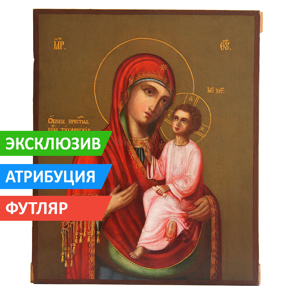 Богородичная икона с Тихвинским образом Божией Матери - еще один замечательный повод стать обладателем настоящей и очень красивой дореволюционной иконы!