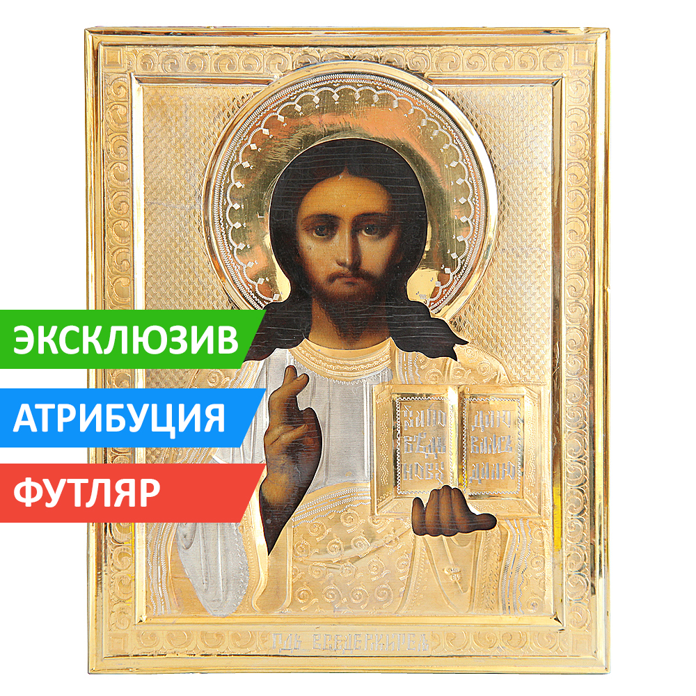 А это - образ Спасителя, тоже в серебре. Очень красивая живопись и добротный серебряный оклад с позолотой - Вы бы хотели такую икону?..