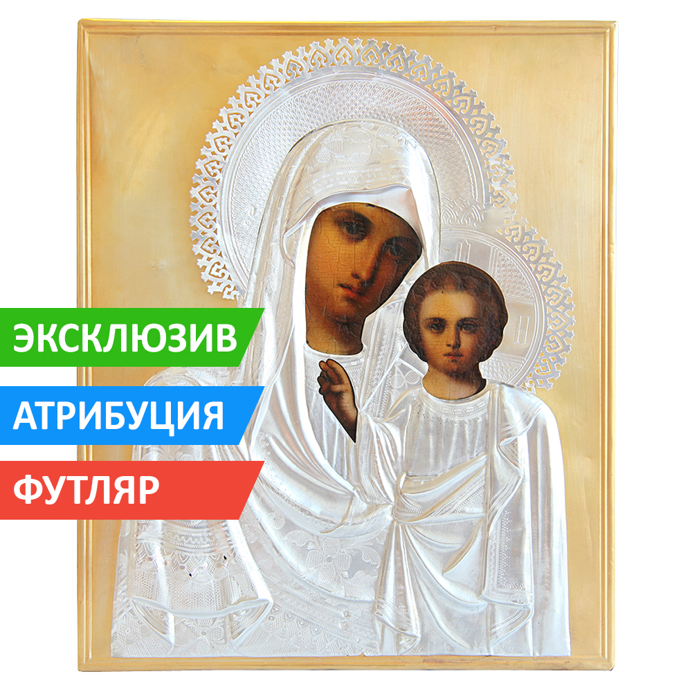 Казанский образ Богородицы, хоть и достаточно распространенный, среди антикварных дореволюционных религиозных произведений, все же в ТАКОМ исполнении и сохранности встречается отнюдь не каждый день.