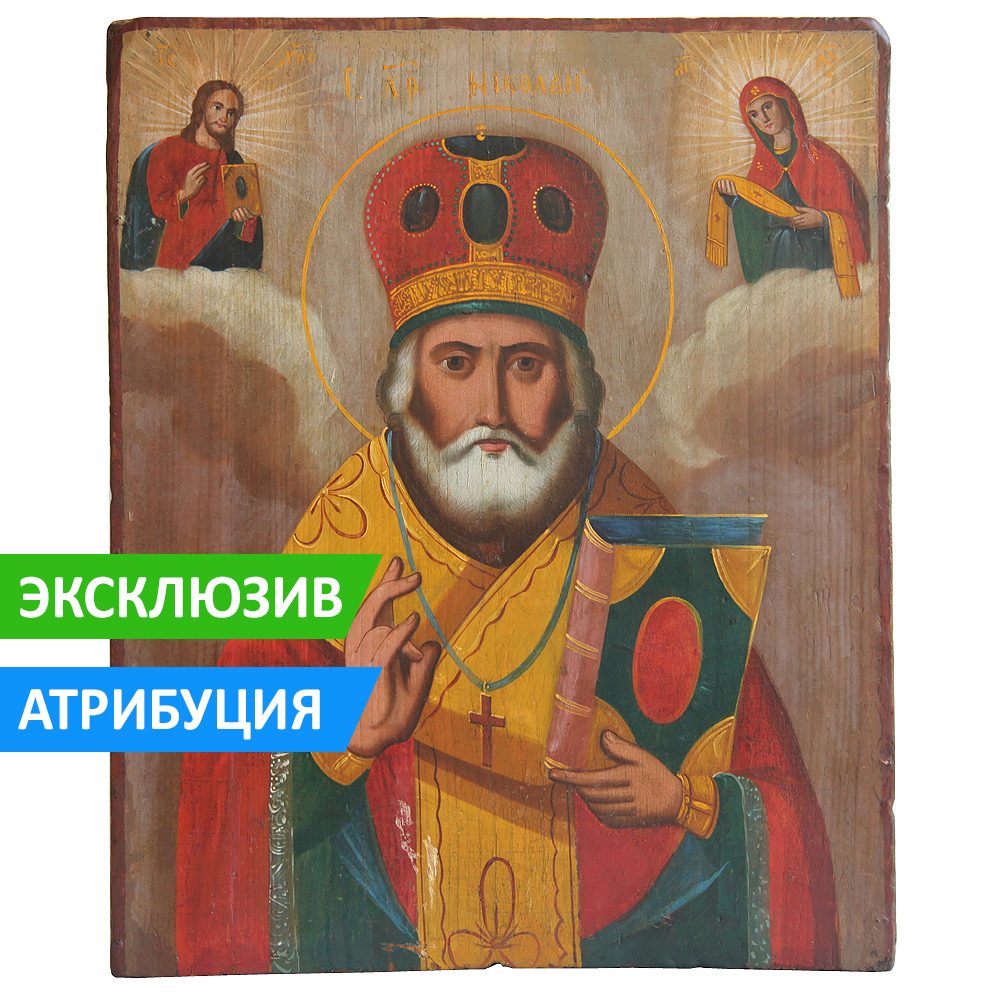 Необычный, доверительно-теплый и наивный образ Николая Чудотворца - это икона 19 века, которая сохранилась идеально и при этом стоит совсем не дорого.