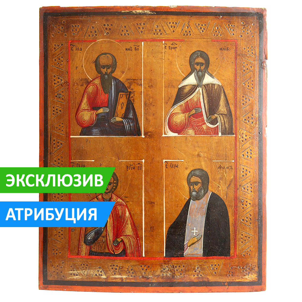 А вот с "мужскими" четырехчастниками все гораздо сложнее, это уже редкость и конечно, появление такой антикварной иконы в продаже - это всегда новость приятная, прежде всего для тех, кто хочет купить для себя или в подарок по-настоящему хороший образ.