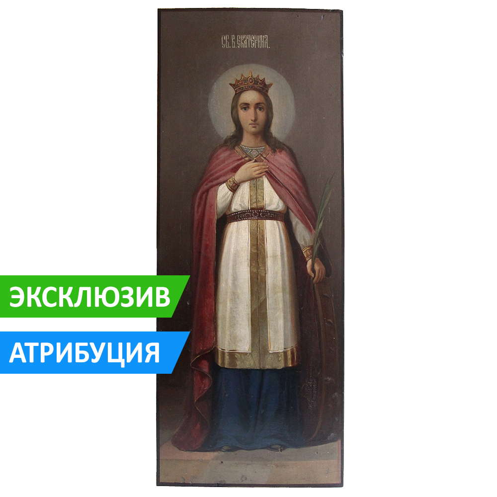 Именная, мерная, ростовая - все определения верны для старинной иконы святой Екатерины, замечательно исполненной и отлично сохранившейся до нашего времени!