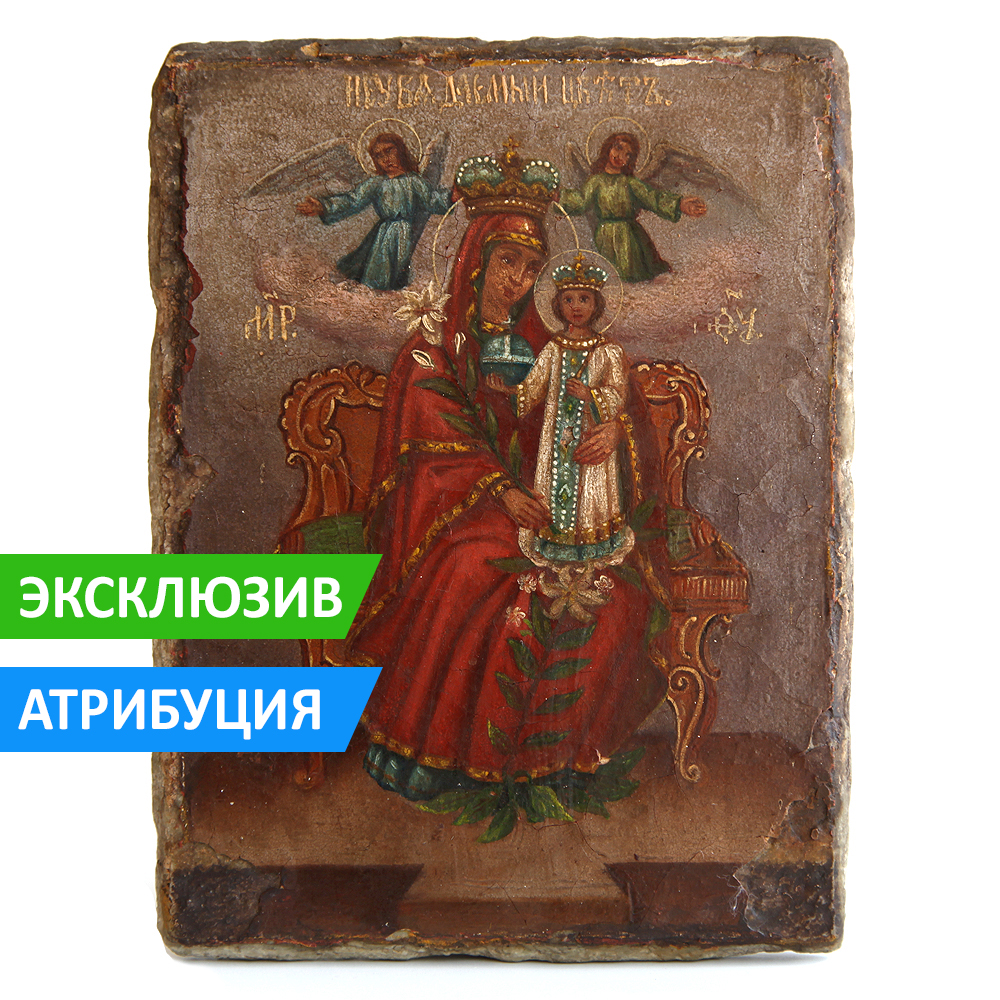 Образ Пресвятой Богородицы Неувядаемый Цвет, если мы говорим о старинной иконе - еще одна иконографическая редкость. Здесь же мы имеем дело и с вовсе, уникальным экземпляром, ведь это "вечная икона", написанная на... каменном пласте!