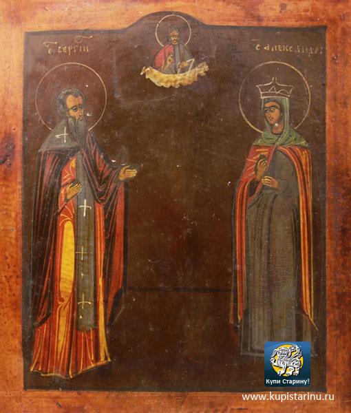 Старинную икону преподобный Сергий Радонежский и святая царица Александра можно купить молодоженам, или супругам с именами Сергей и Александра! Редкий набор святых, редкая возможность сделать подарок себе или своим близким людям - родственникам, друзьям!
