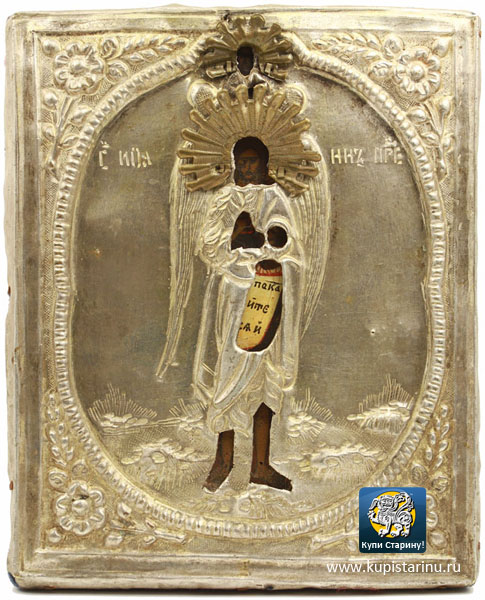 В пару к иконе Пресвятой Богородицы "Нечаянная Радость" можно купить старинную икону Иоанн Предтеча Ангел Пустыни - она выполнена в таком же размере и технике и сохранилась также идеально!