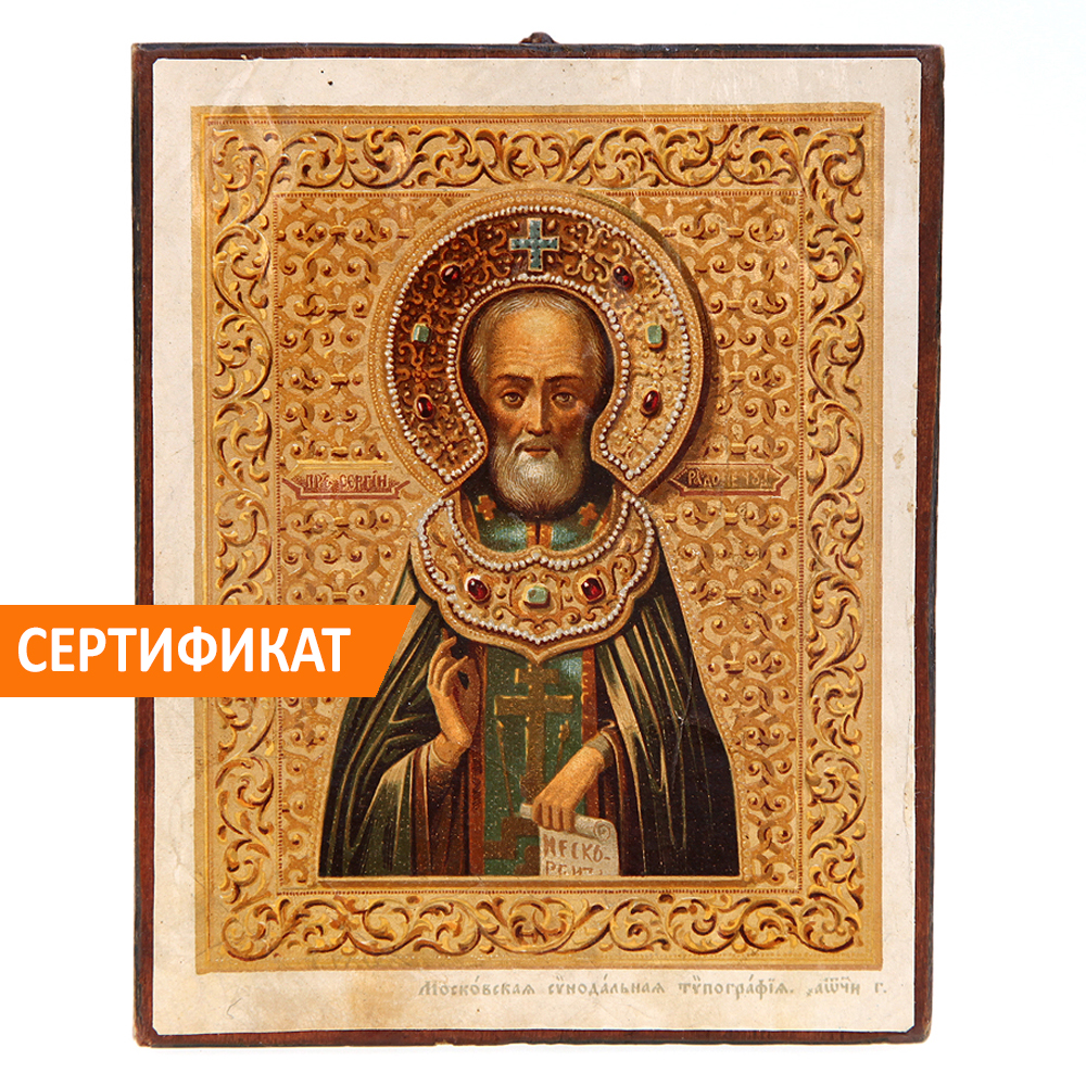 А вот очень интересное изображение преподобного Сергия Радонежского, выполненное в Синодальной типографии, в Москве.