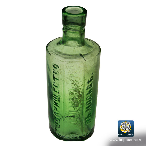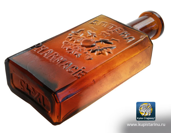 Стеклянный пузырек товарищества Кёллера и Ко – редкий экспонат для коллекции, впрочем, как и старинный аптечный коричневый пузырек с рельефным орлом и надписью на двух языках "АПТЕКА-PHARMACIE"!