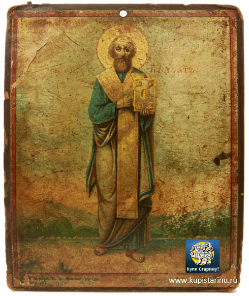 Старинная печатная икона с изображением святого Кодрата - это крестильный образ, отпечатанный в типографии Фесенко в Одессе: