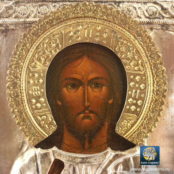 А вот настоящий шедевр: старинная икона Спас Вседержитель из Мстёры в окладе Крестьянинова!
