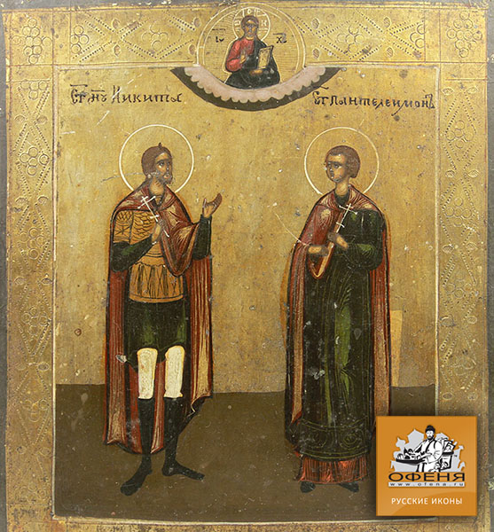 Представляем прекрасно сохранившуюся икону избранные святые: великомученики Никита Воин (Никита Бесогон) и Пантелеймон!