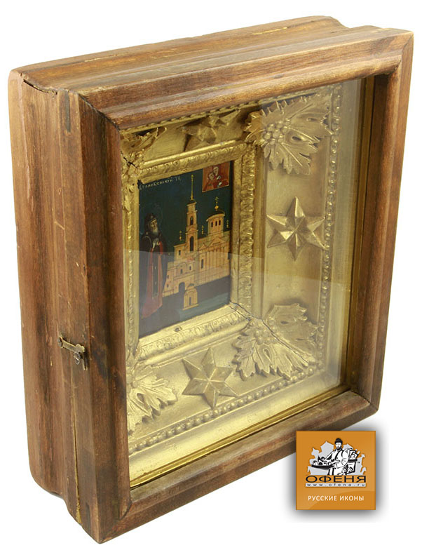 Паломническая икона преподобный Нил Столобенский в оригинальном роскошном старинном киоте, икона в музейной сохранности!