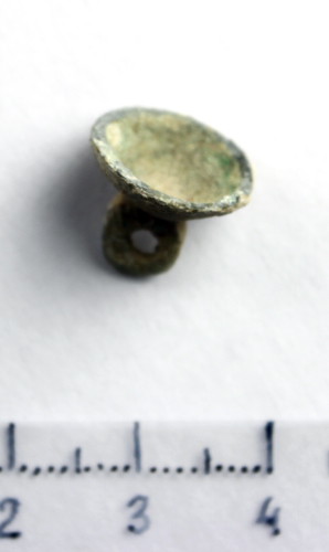Мастер, изготовивший эту пуговицу, был глубоким экономом, поэтому он поместил в нее шарик из глины, а затем обмакнул заготовку в расплавленный металл и получил привычную пуговку-гирьку. Но за время лежания в земле пуговица потеряла верх, показав нам хитрость мастера.
