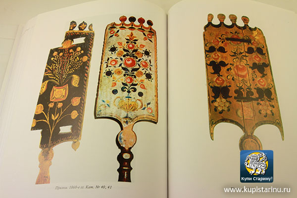 Важно, что в издании приведены не просто разрозненные по тематике, предметы, а целые объемные коллекции. Такова, например, коллекция прялок, расписанных в самых разнообразных красках и узорах.