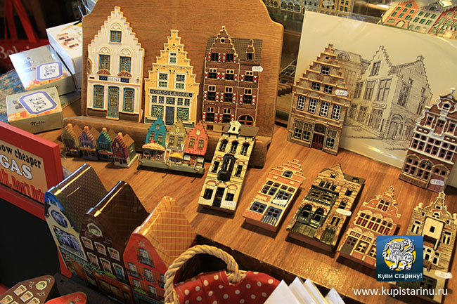 В своих поездках мы стараемся приобретать только сувениры, изготовленные в той самой стране, которую мы посещаем. Особенность же нынешней ситуации, а я бы даже сказал, острый ее трагизм заключается в том, что многие торговцы сувенирами покатились по простой дорожке и заполняют свои прилавки китайским товаром. Не знаю, как вам, а мне лично противно бывает перевернуть магнит из, например, «Кёльна» и прочитать там надпись, которая и так уже стоит на подавляющем числе любых товаров. Китайцы, конечно, молодцы, что осваивают и сувенирный рынок всех стран, но все же это уже перебор. Поэтому мы готовы даже переплатить, но приобрести аутентичные сувениры, изготовленные в Генте и тут мы их нашли! Оригинальные керамические домики будут отлично смотреться на нашем холодильнике, а вот яркая керамика на этот раз осталась в лавке – применения мы ей не смогли придумать.