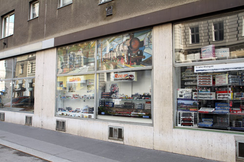 Как говорится, в Германии магазинов с железнодорожной тематикой больше, чем мясных лавок и я рад был отметить, что в Австрии дела с железнодорожным моделизмом обстоят не хуже. Жаль день был не рабочий и мы только потолклись у витрины, где творилось нагромождение паровозиков, вагончиков и всякой вспомогательной шмурдятины, необходимой для создания полноценного макета железной дороги у себя дома.