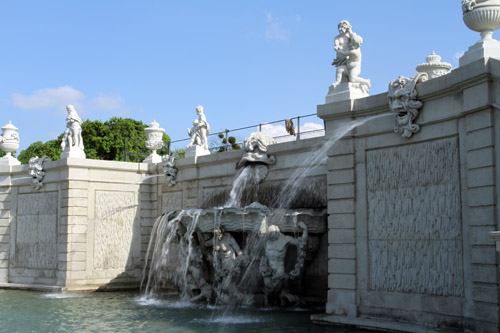 Выйдя из стен замка, мы обошли его и оказались в протяженном каскадном парке с прудами и фонтанами.