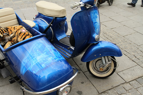 Прямо на площади собрал толпу вот такой удивительный мотороллер. Хозяин скромно стоял рядом и наслаждался всеобщим восторгом. Впрочем, если любой из нас обладал таким чудом, нам было бы чем гордиться!..