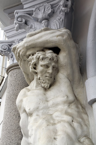 Дома тут старые, вот, например, фигура несчастного дядьки, уж какой век держащего балкон. Устал, должно быть…