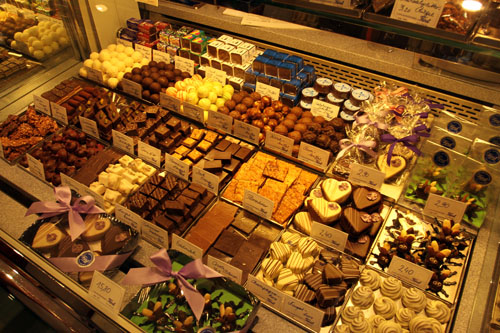 А мы зашли в главную кондитерскую – она находится в конце самой туристической улицы, возле церкви, прилепившейся к горе, я раньше ее показывал. В первый день магазинчик оказался закрытым по причине вечерней поры, а тут мы успели. Тут, на витрине и вокруг нее громоздятся разнообразные кюгели – это фетиш-конфеты, которые просто необходимо попробовать и увезти с собой из Зальцбурга. Работа ручная, каждая конфета – произведение кондитерского искусства, поэтому денег за них просят мама не улыбайся, но надо было попробовать и увезти, поэтому мы попробовали и увезли частичку аутентичной Австрии!