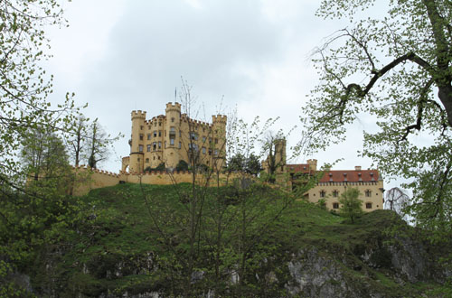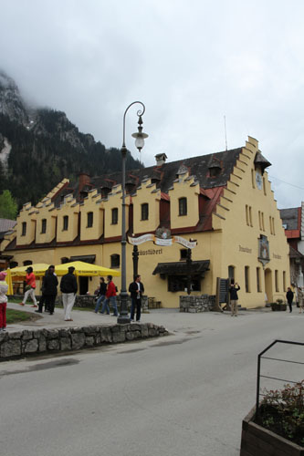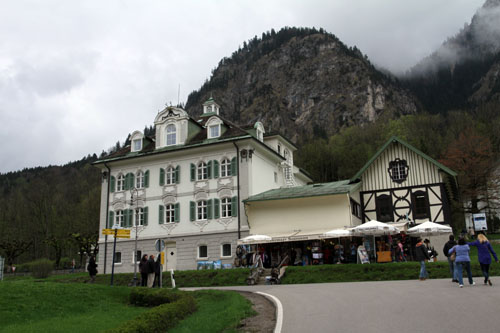 Все таки у немцев все здорово организовано: подъехали, нам показали место на парковке, причем предложили несколько вариантов на выбор, и вот мы уже гуляем по поселку, из которого сначала отправимся в один замок пешком, он тут на небольшой горе, а уж потом нас повезут в горы к Нойвайштайну на автобусе. Все вокруг игрушечное и тут есть и рестораны и туалеты и даже гостиницы, где, судя по русской речи, отдыхают наши соотечественники, вот только мы не поняли, чего они тут собираются делать две недели, если реально осмотреть окрестности со всеми экскурсиями всего за один день?