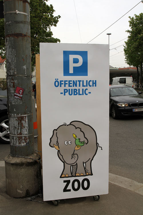 В своих пеших прогулках мне понравилось фиксировать различные забавные плакаты и вывески, вот одна из них – что-то про стоянку и зоопарк.