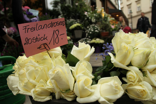 Собор Святого Стефана поражает своим величием и нам чудом удалось зайти внутрь, так как он уже готовился к вечернему закрытию. Осмотрев собор внутри, мы начали его обходить, тут мне удалось сделать фотографию в цветочной лавке: