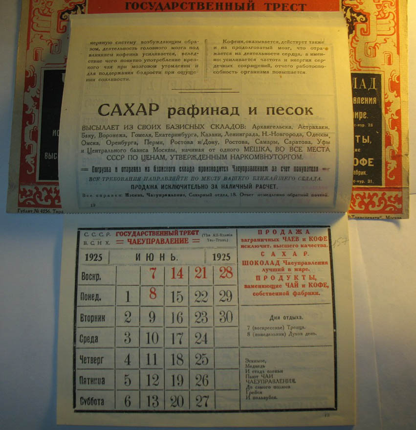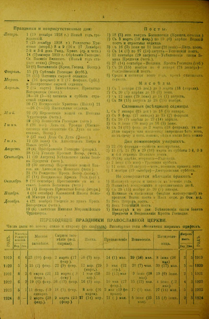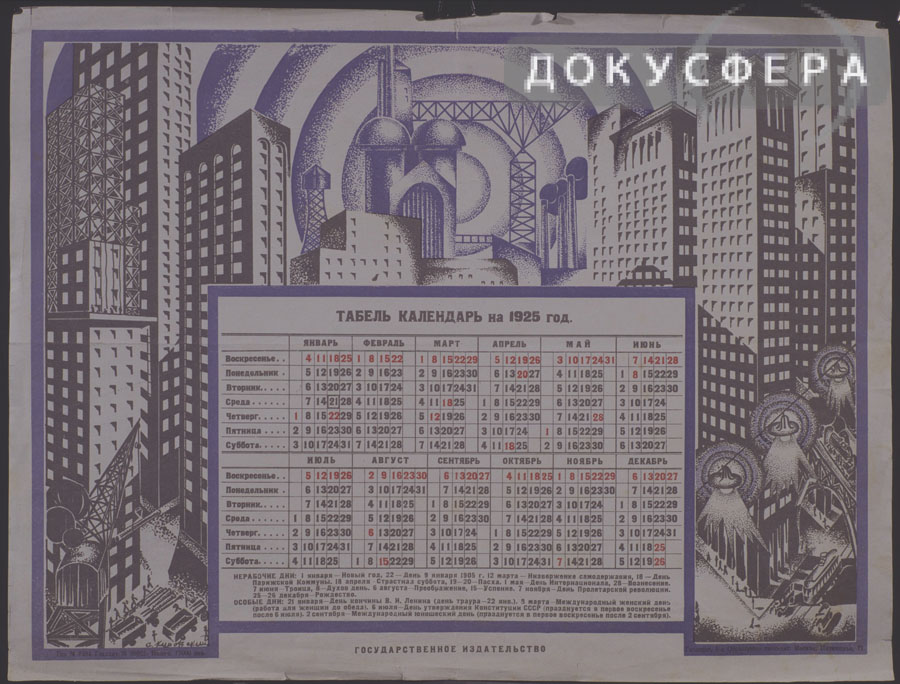 В табель-календаре за тотже, 1925, год можно наконец узнать все основные праздники.