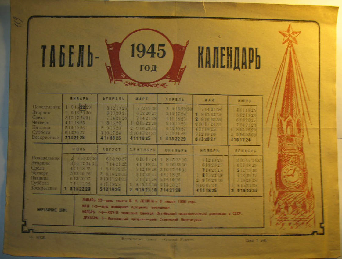 Однако уже в декабре 1947 года празднование Дня Победы было отменено, и тем же указом этот выходной день был перенесён на Новый год (напомню, с 1930 по 1947 год 1-е января считался рабочим днём). Так что, первое января, в какой-то мере, можно считать и Днём Победы!