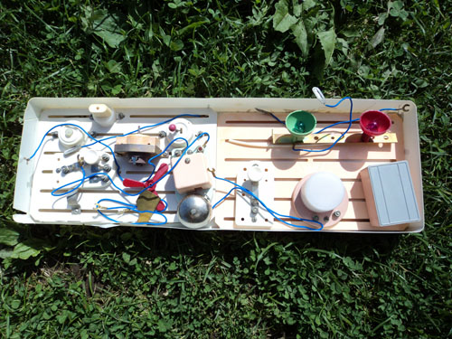 Только тут все элементы собраны, а в том конструкторе, что у меня был, надо было еще самостоятельно. например, собрать из винтиков, пластинок и прочего мелочья зуммер. Естественно, что он не звонил, но все было сделано по инструкции... :)