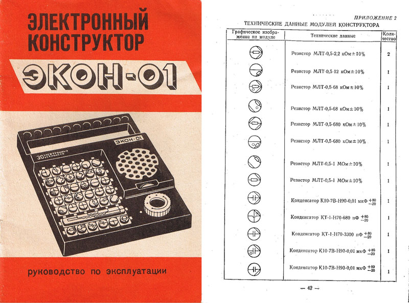 "Электронный конструктор - "Экон-01". Выпуск с 1982 года. Ленинградский опытный завод при НИИ "Электростандарт".