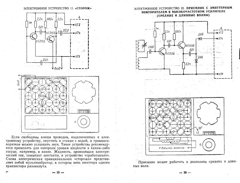 В детстве у меня тоже был электроконструктор, но несколько другой схемы. Напоминал он небольшой пенал, в который вставлялись кубики с различными элементами - ёмкости, диоды, транзисторы, сопротивления, проводники... и в зависимости от их установки можно было собрать от приёмника, до сигнализации. Вообщем с десяток разных устройств. Подозреваю, что он тоже где-то на чердаке, на даче, живёт :)