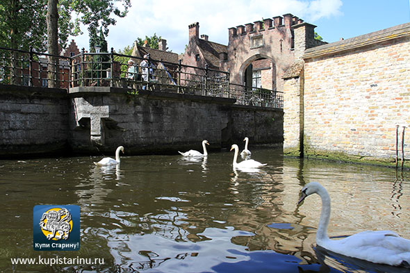 А Брюгге продолжал открывать нам свои красоты, вот например, вид на очередной канал. Красиво отражается небесная синь и стены в воде, а из окна над водой местная толстушка кормит белых лебедей, которые еще и устраивают настоящее шоу, выпрашивая у хозяйки дома очередную подачку!