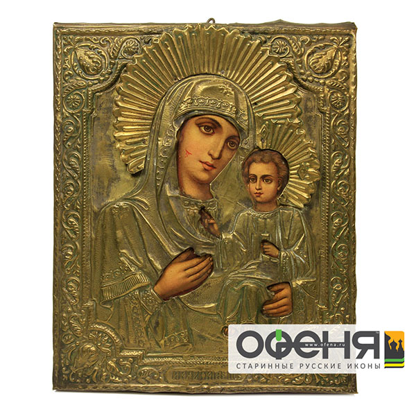 Старинная печатная икона Пресвятой Богородицы Иверская - хороший повод для приобретения бюджетной иконы в дом или в качестве памятного душевного подарка!